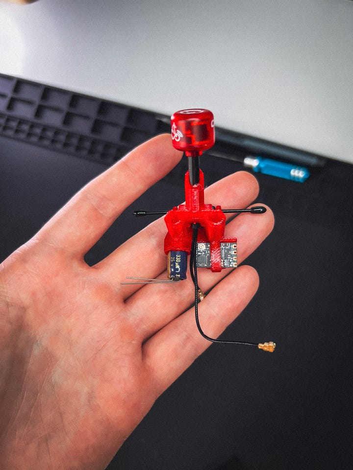 Zeus Nano виявився напрочуд міцним і стабільним VTX. У парі з антеною Cherry 2 він задав загальний стиль білду — комбо із червоних та оранжевих акцентів на фоні карбону і чорного 3D-друку.