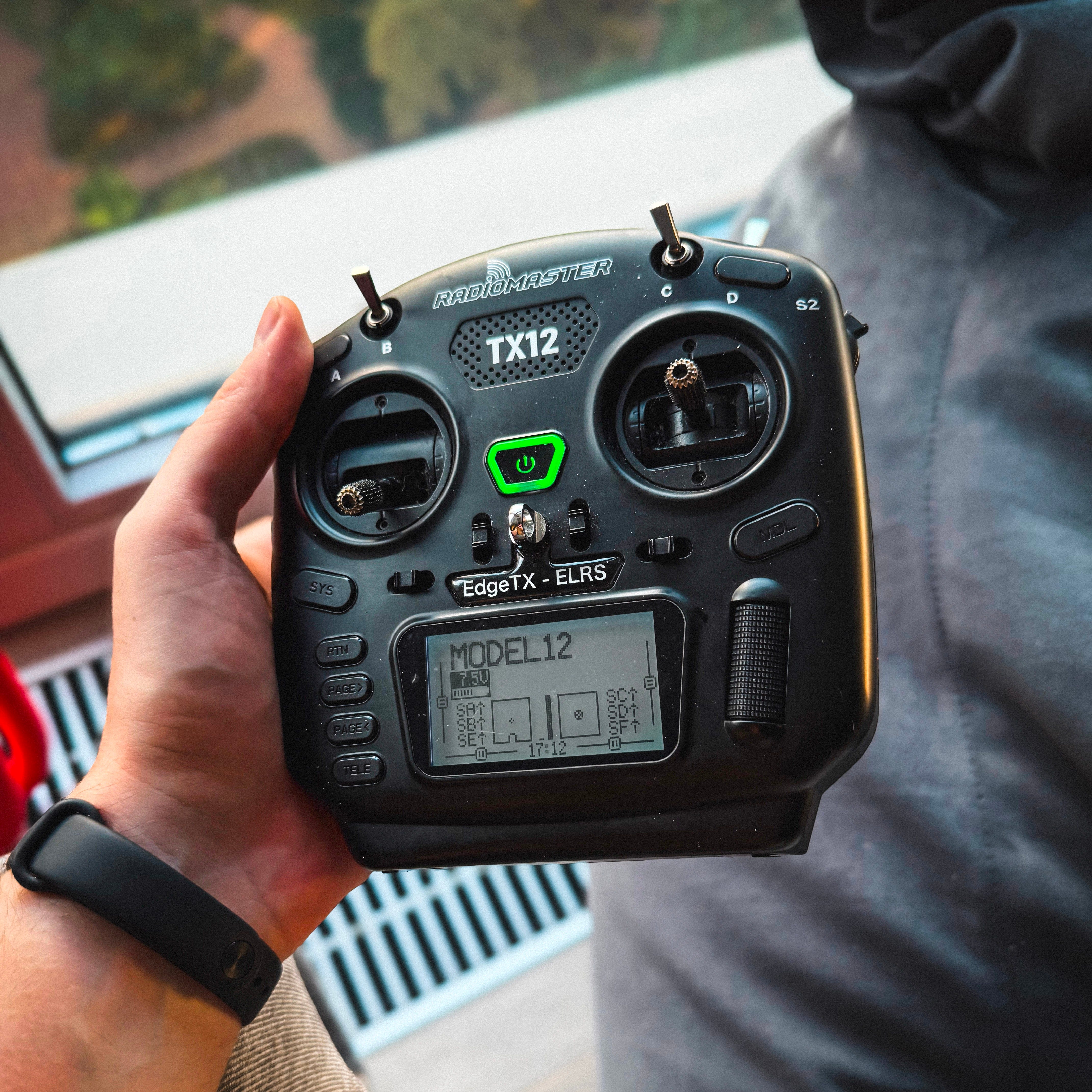 RadioMaster TX12 — це базована апаратура. Якщо ви будете проходити будь-який FPV-курс, то з високою ймовірністю побачите там цей пульт. Він зручний для людей із будь-яким розміром долонь, має всі необхідні функції, достатню кількість тумблерів, комфортний хід стіків та можливість підключення зовнішнього TX модуля.