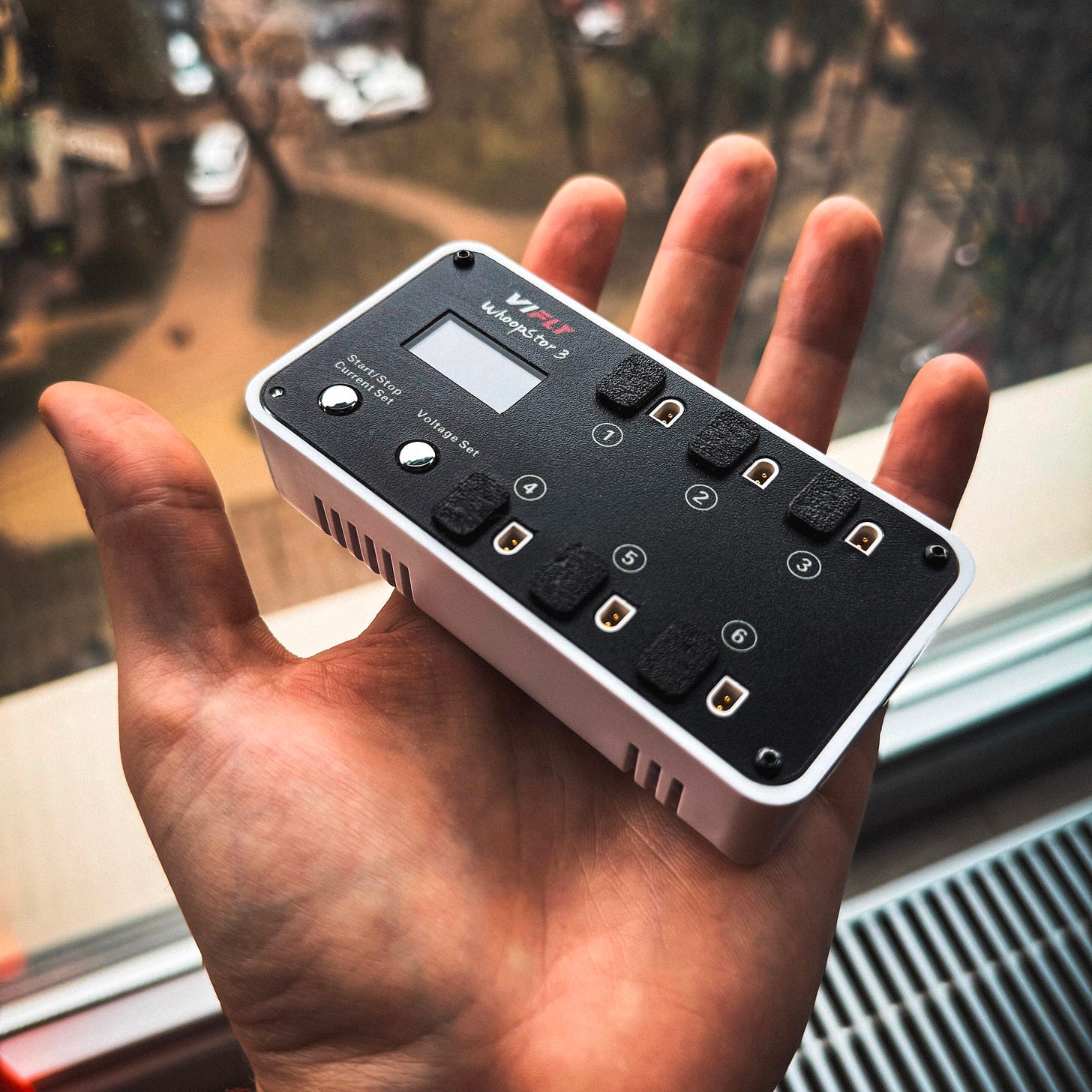 Це максимально просте, перевірене та зручне зарядне для вупів. Все, що вам потрібно робити — тиснути кнопку, щоб перемикатися між режимом Charge (зарядити до 4.35V) та Storage (3.85V).